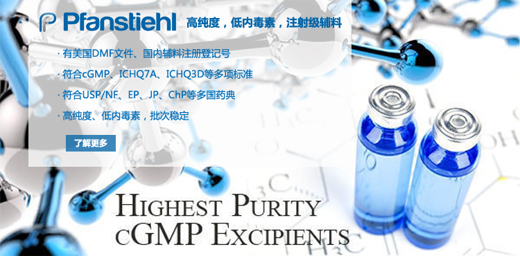 “熱烈祝賀Pfanstiehl的注射級甘氨酸Glycine(G-140)喜獲CDE登記號F20250000403, 這是Pfanstiehl產品獲得的第18個CDE登記號!”甘氨酸在醫藥輔料制劑中應用廣泛,, 可作為緩沖劑,增溶劑,穩定劑等,具有諸多優勢。Pfanstiehl秉承一貫高品質理念,為滿足全球生物制藥行業對于高品質甘氨酸的需求,隆重推出的注射級甘氨酸Glycine (G-140), 具有超高純度,超低內毒素,超低金屬殘留的特點,單獨檢測29種金屬離子,并且新增DNA,RNA,DNA酶,RNA酶和脂肪酶,亞硝酸鹽等多項質量指標的檢測,符合多國藥典規定(USP, EP, BP, JPE, ChP),可用于生物治療性藥物和疫苗的生產。產品信息:· 產品名稱:Glycine, High Purity, Low Endotoxin, Low Metals, USP, EP, BP, JPE, ChP (G-140)· 中文名稱:甘氨酸· 分子式:C2H5NO2· 分子量:75.07 g / mol· CAS號:56-40-6· 產品貨號:G-140產品特點: · 超高純度,超低內毒素,超低微生物含量,超低金屬雜質殘留· 質量指標新增DNA,RNA,DNA酶,RNA酶,脂肪酶和亞硝酸鹽檢測· 符合多國藥典:USP, EP, BP, JPE, ChP· 符合ICH Q3D標準· 符合GMP標準· 已獲DMF和CDE登記號 產品應用:· 緩沖劑· 穩定劑· 增溶劑如果您對Pfanstiehl注射級別Glycine G-140感興趣,歡迎聯系Pfanstiehl 中國區代理商北京西美杰科技有限公司獲得如下詳細的產品概況說明文件和測試樣品。Pfanstiehl Inc.最新產品系列如下,歡迎聯系北京西美杰科技有限公司獲取100g裝免費樣品。北京西美杰科技有限公司為Pfanstiehl中國代理,為客戶提供完善的技術支持與售后服務。歡迎撥打西美杰客服電話400-050-4006或者登陸網站www_xmjsci_com.ccshengle.com了解更多信息。 更多>西美杰介紹